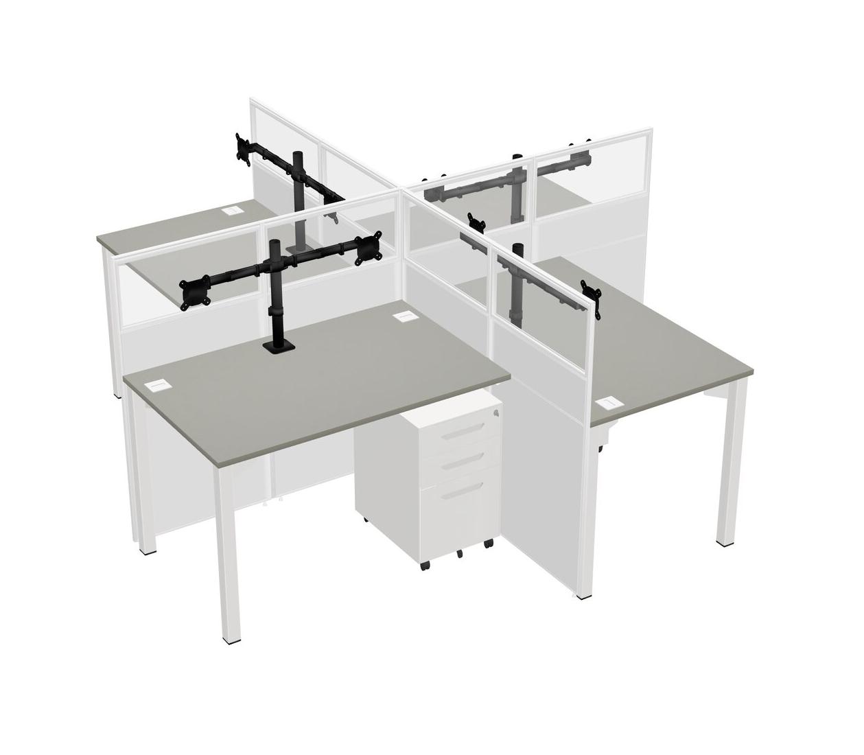 Grey Shadows Quad Cubicle Workstations For 4 + White Metal Mobile Drawers + Monitor Arm (double Arms)
