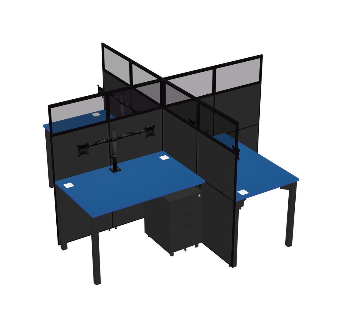 Prism Blue Quad Cubicle Workstations For 4 + Black Metal Mobile Drawers + Monitor Arm (double Arms)