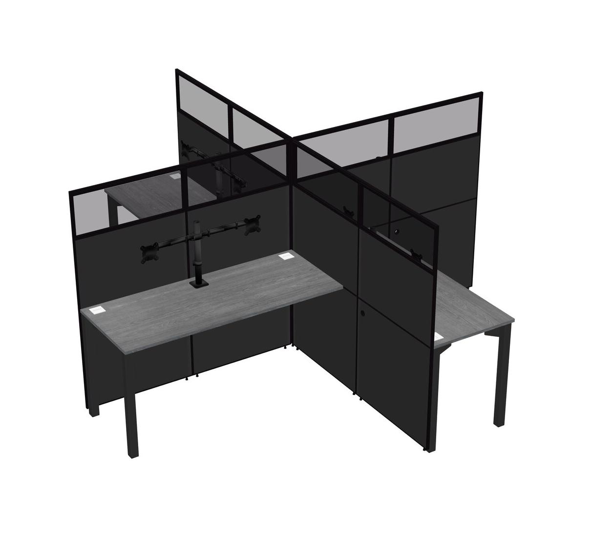 Grey Quad Cubicle Workstations For 4 + Monitor Arm (double Arms)