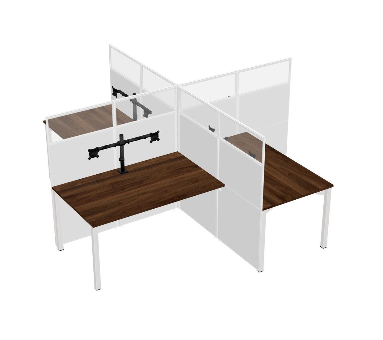 Columbia Walnut Quad Cubicle Workstations For 4 + Monitor Arm (double Arms)