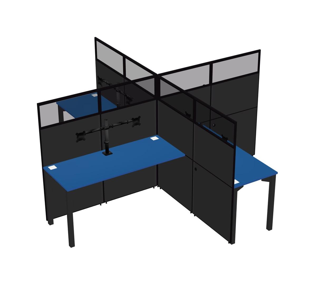 Prism Blue Quad Cubicle Workstations For 4 + Monitor Arm (double Arms)