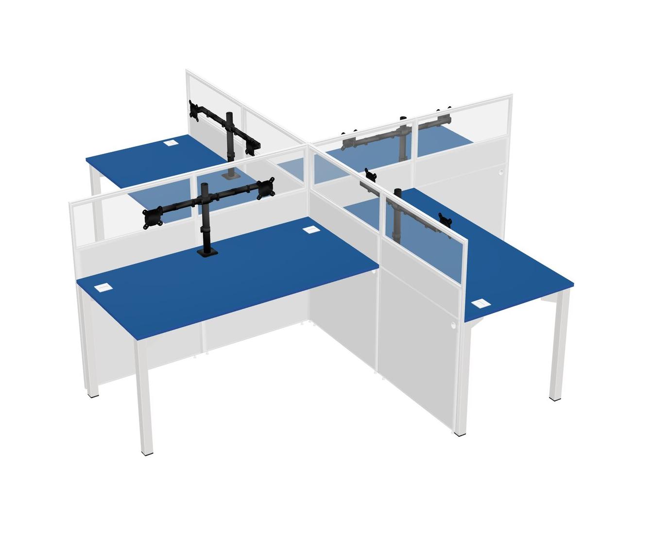 Prism Blue Quad Cubicle Workstations For 4 + Monitor Arm (double Arms)