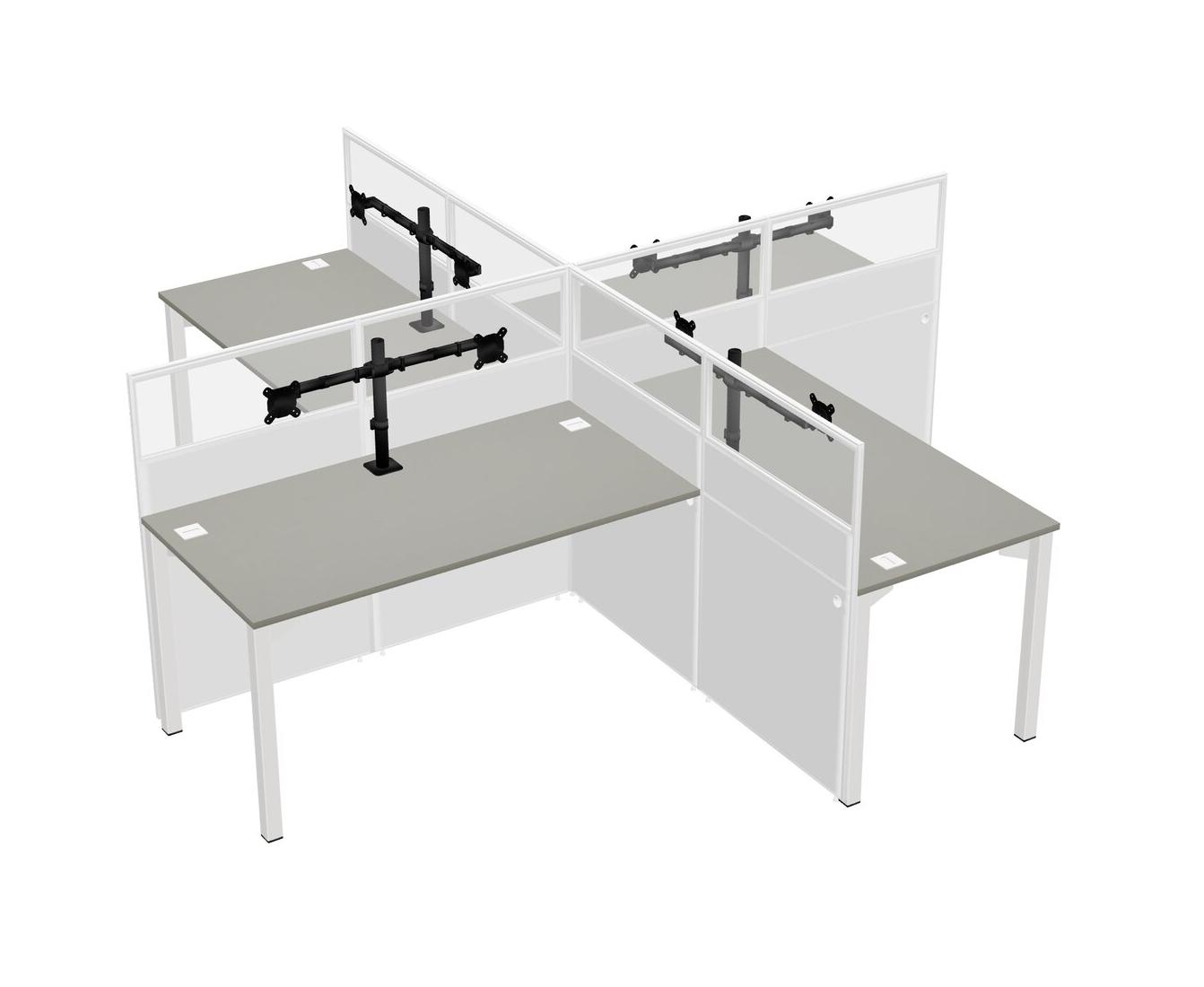 Grey Shadows Quad Cubicle Workstations For 4 + Monitor Arm (double Arms)