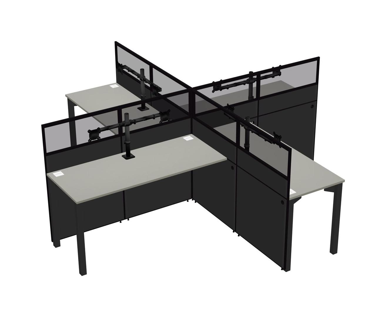 Grey Shadows Quad Cubicle Workstations For 4 + Monitor Arm (double Arms)
