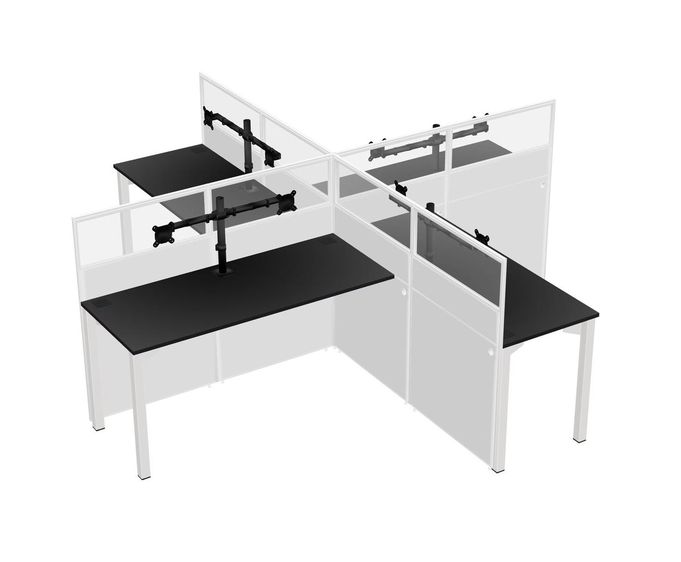 Black Quad Cubicle Workstations For 4 + Monitor Arm (double Arms)