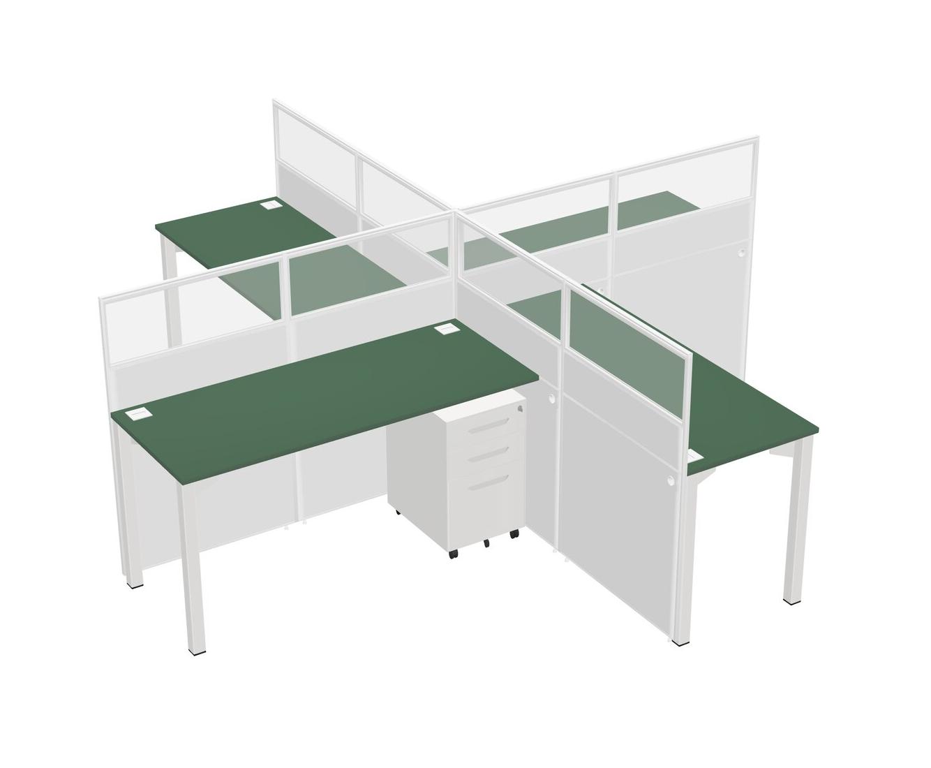 Green Quad Cubicle Workstations For 4 + White Metal Mobile Drawers