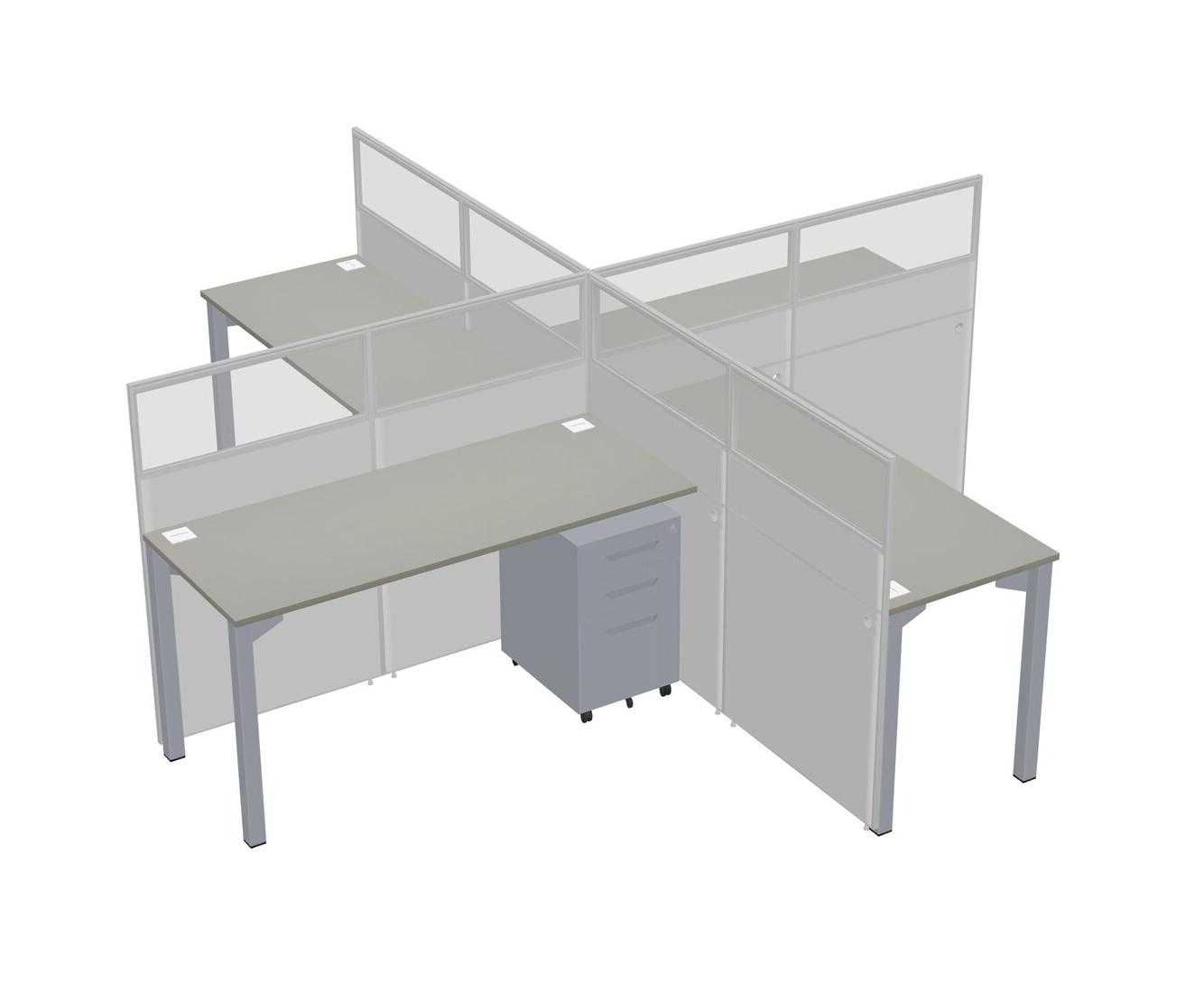 Grey Shadows Quad Cubicle Workstations For 4 + Grey Metal Mobile Drawers