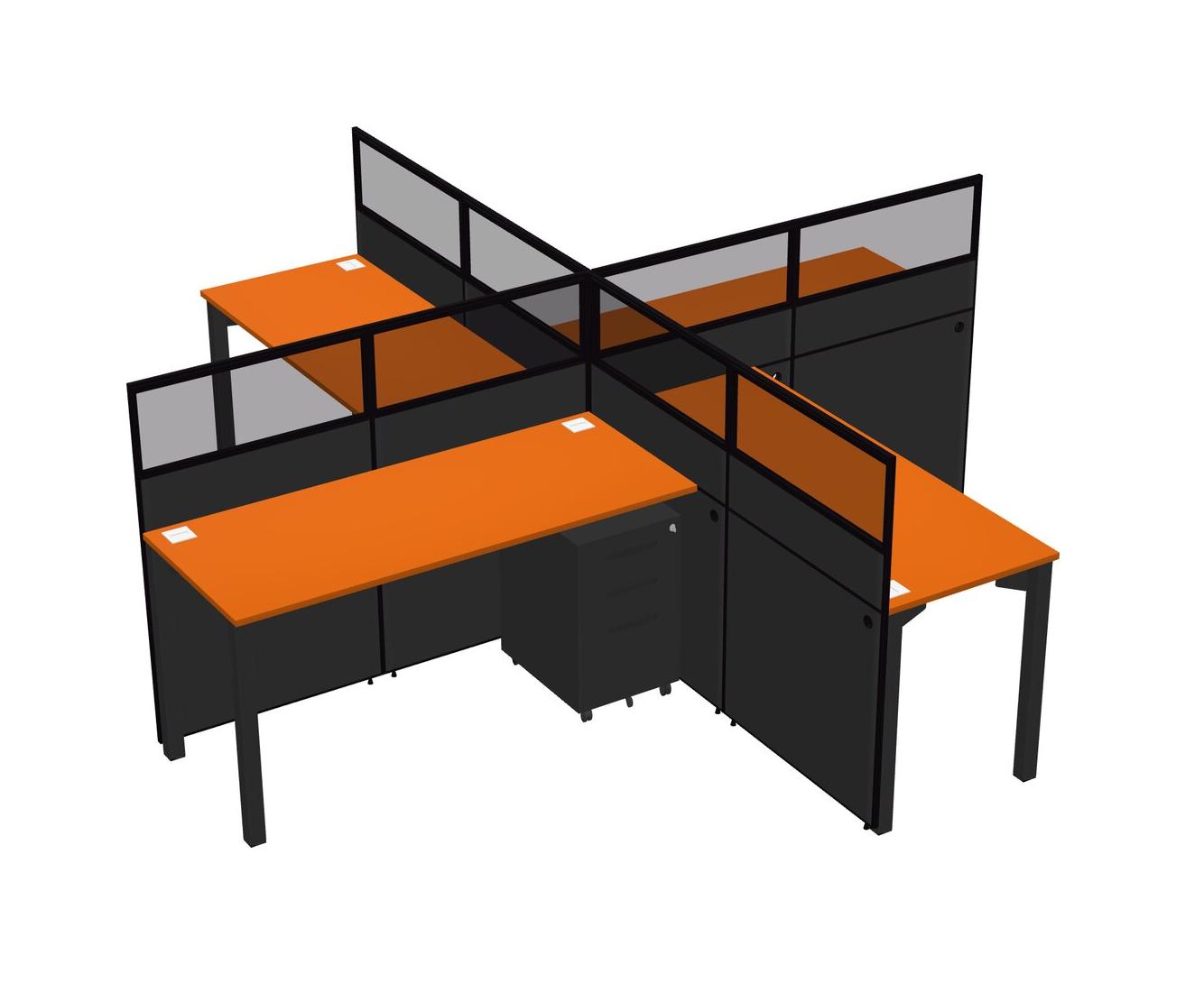 Orange Quad Cubicle Workstations For 4 + Black Metal Mobile Drawers
