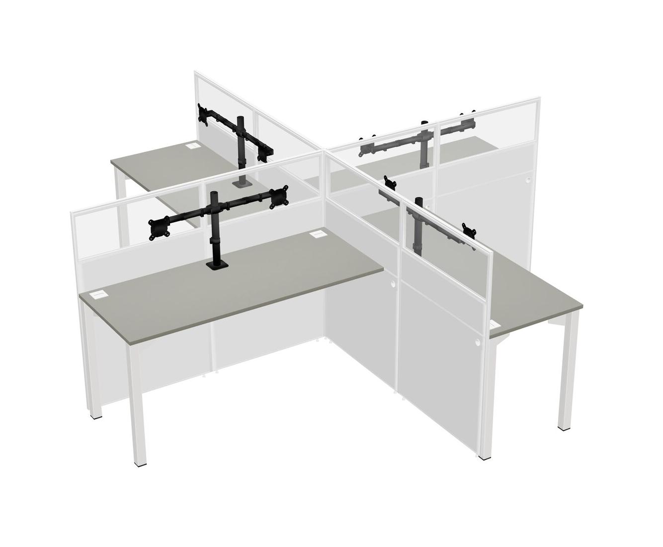 Grey Shadows Quad Cubicle Workstations For 4 + Monitor Arm (double Arms)