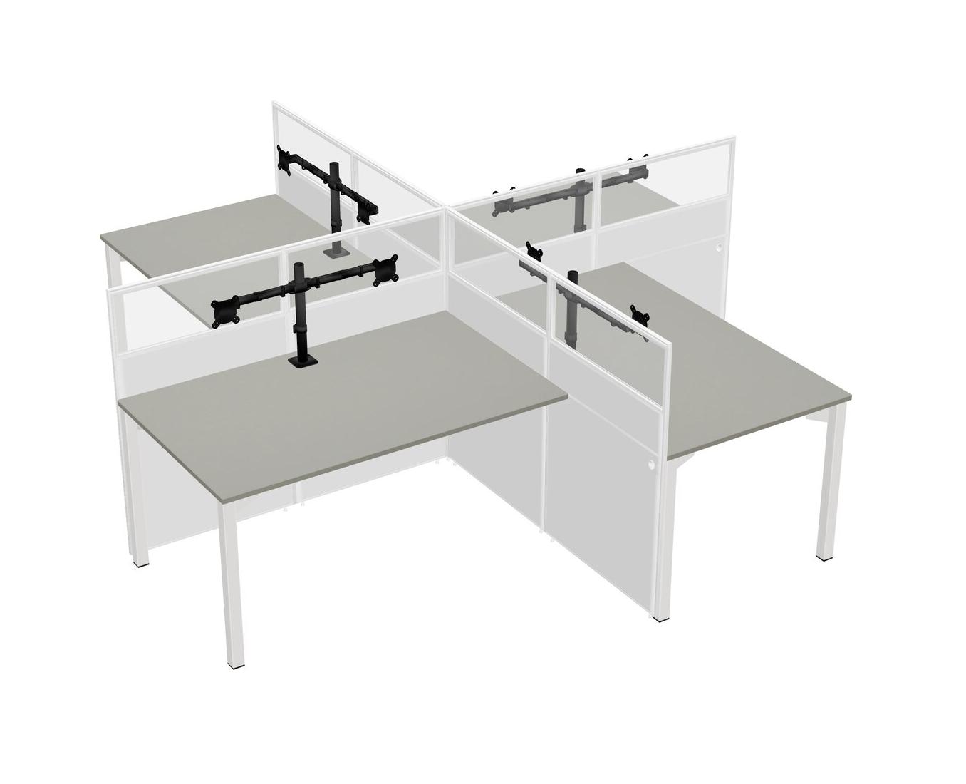 Grey Shadows Quad Cubicle Workstations For 4 + Monitor Arm (double Arms)