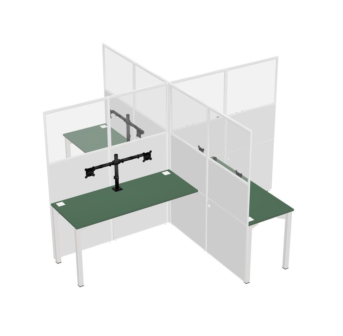 Green Quad Cubicle Workstations For 4 + Monitor Arm (double Arms)