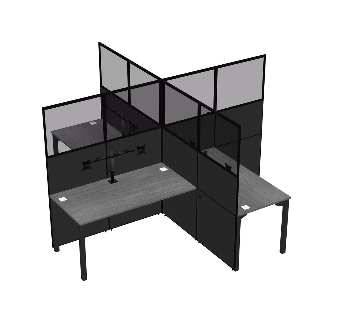 Grey Quad Cubicle Workstations For 4 + Monitor Arm (double Arms)