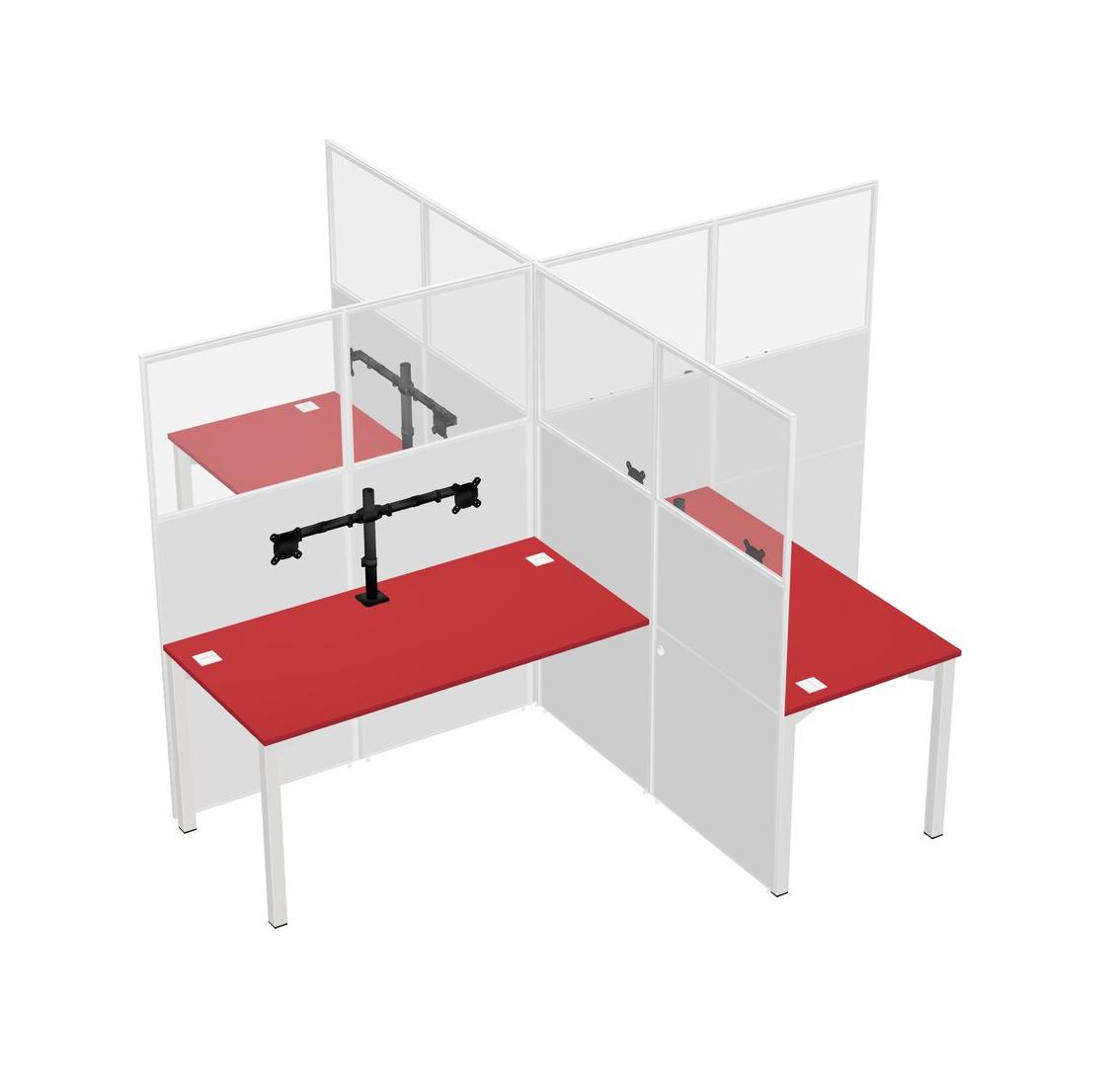 Prism Red Quad Cubicle Workstations For 4 + Monitor Arm (double Arms)
