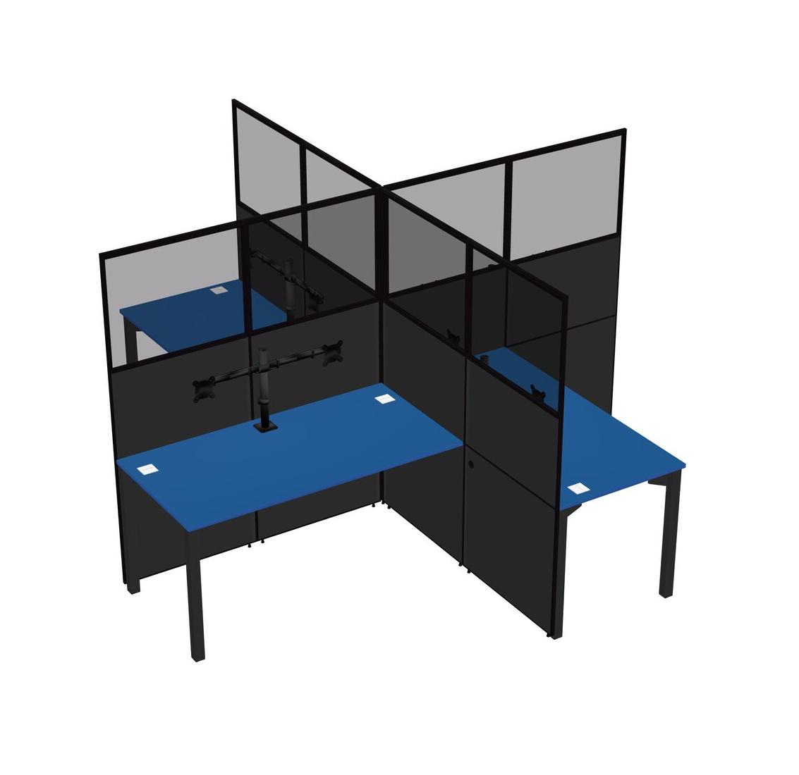 Prism Blue Quad Cubicle Workstations For 4 + Monitor Arm (double Arms)