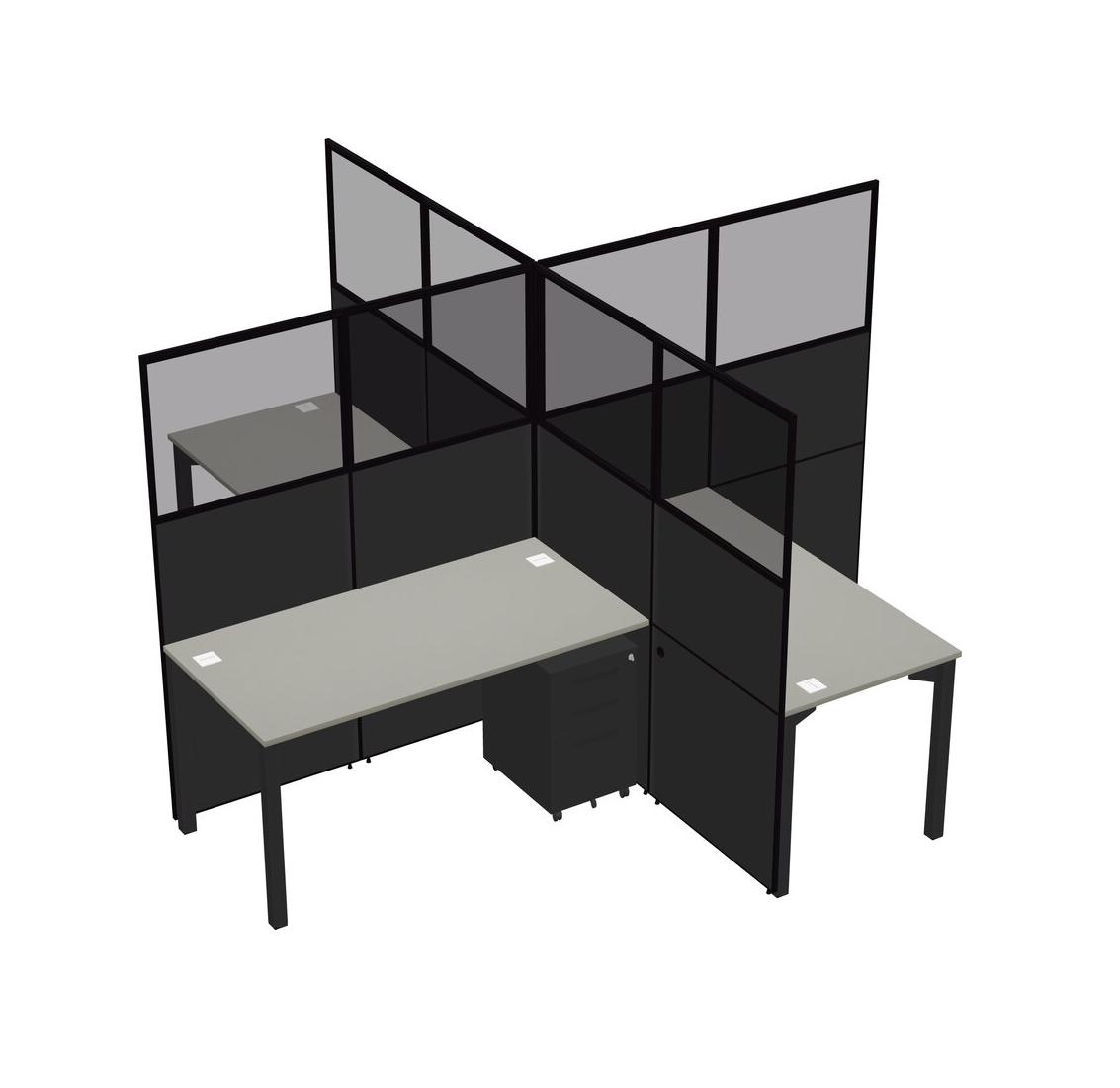 Grey Shadows Quad Cubicle Workstations For 4 + Black Metal Mobile Drawers