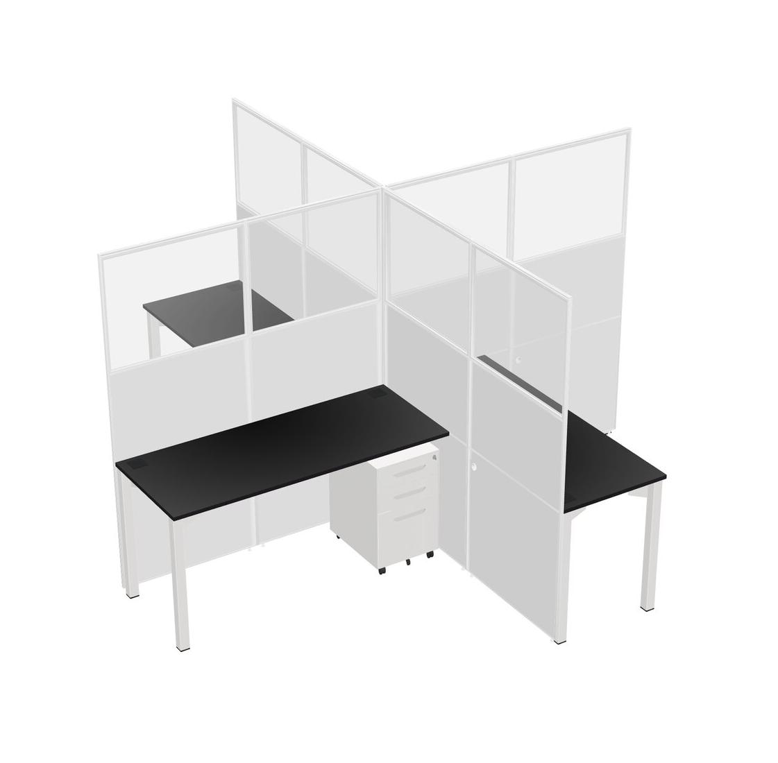 Black Quad Cubicle Workstations For 4 + White Metal Mobile Drawers