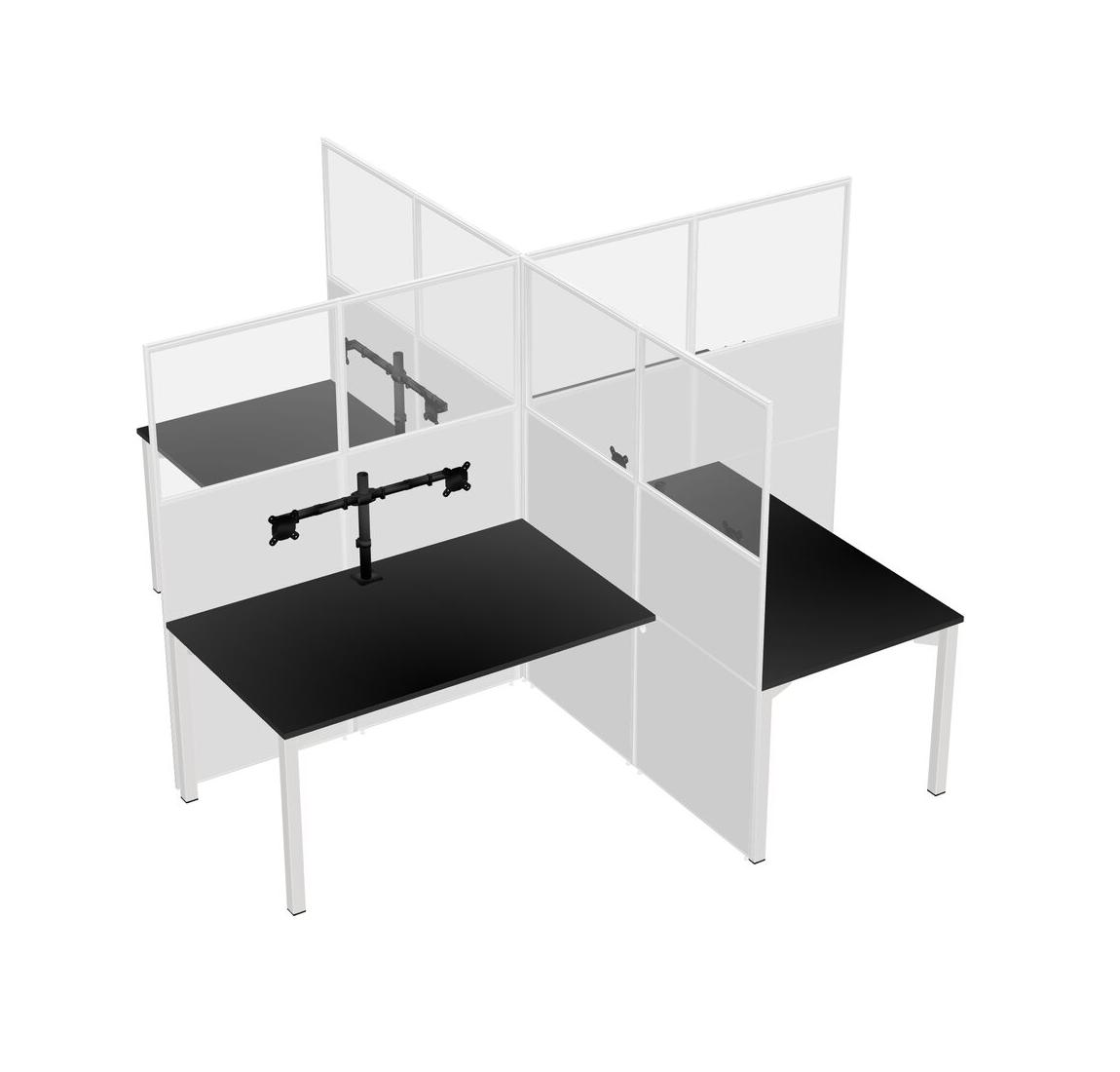 Black Quad Cubicle Workstations For 4 + Monitor Arm (double Arms)