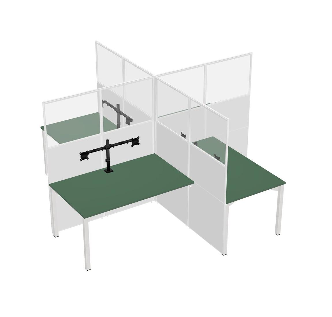 Green Quad Cubicle Workstations For 4 + Monitor Arm (double Arms)