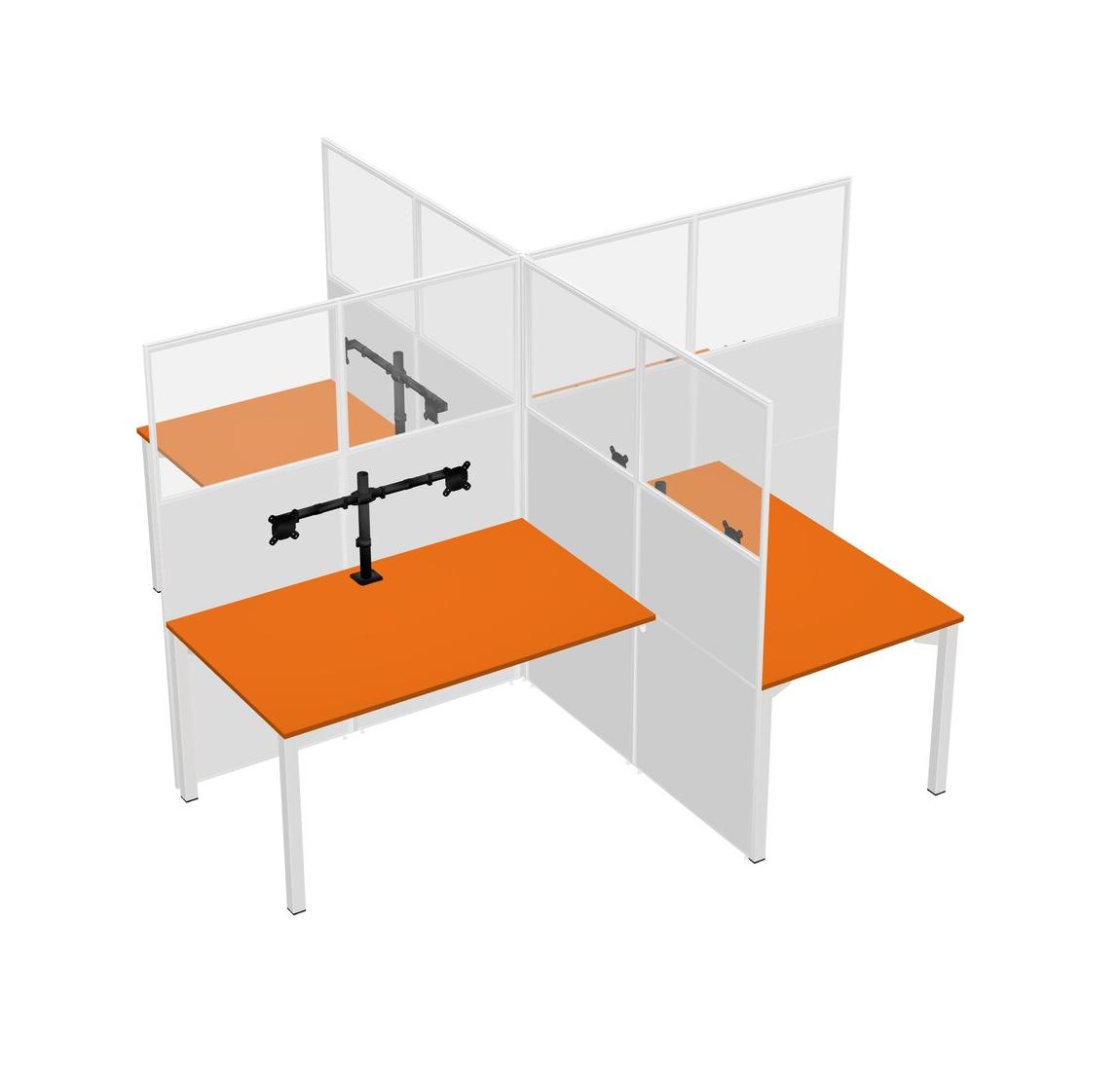 Orange Quad Cubicle Workstations For 4 + Monitor Arm (double Arms)