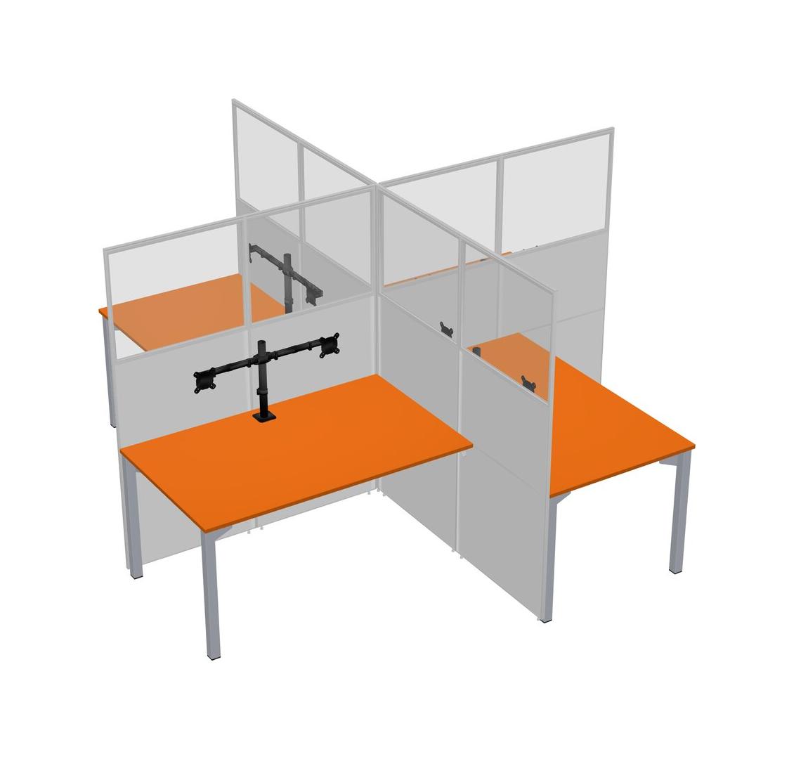 Orange Quad Cubicle Workstations For 4 + Monitor Arm (double Arms)