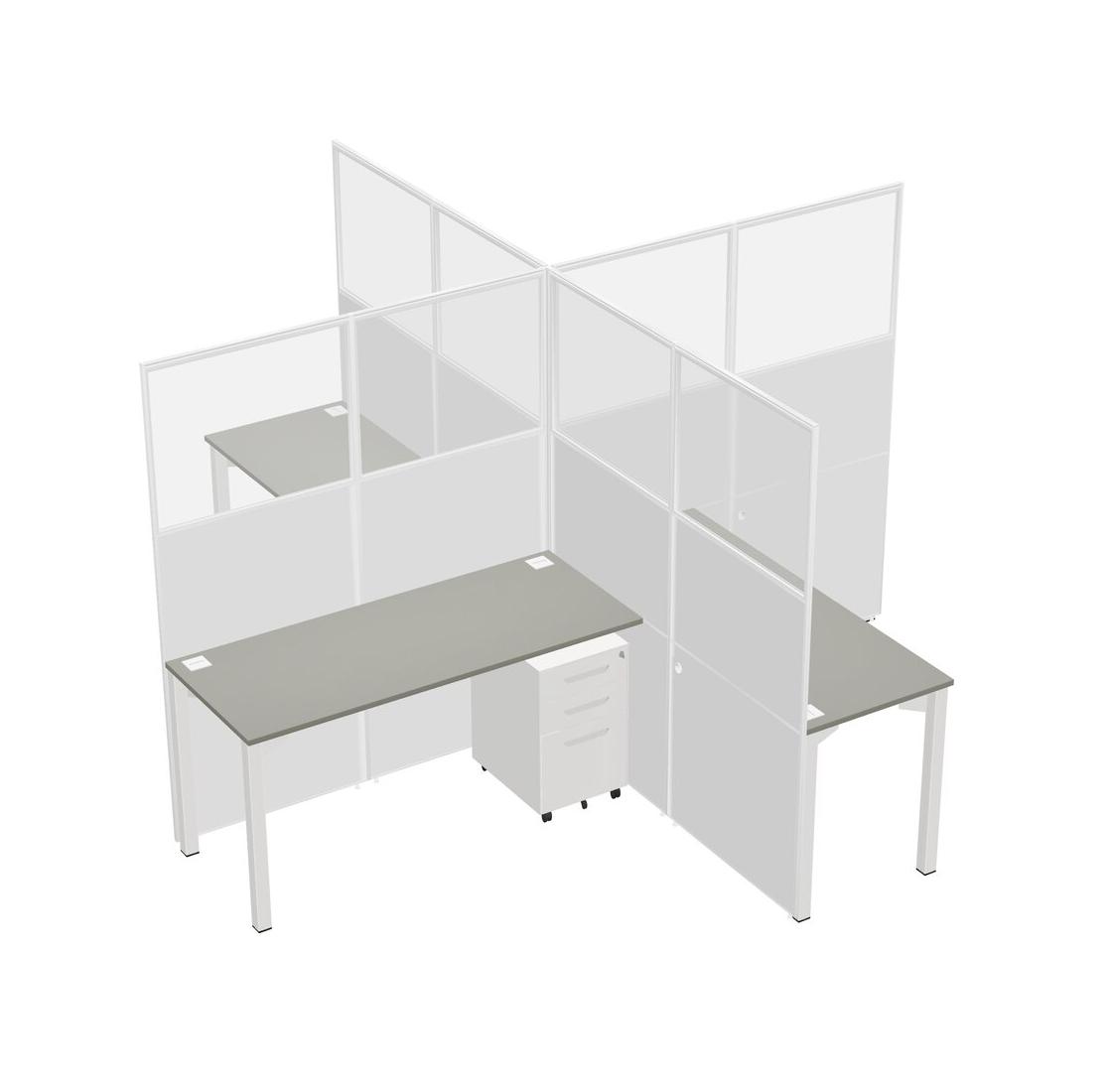 Grey Shadows Quad Cubicle Workstations For 4 + White Metal Mobile Drawers