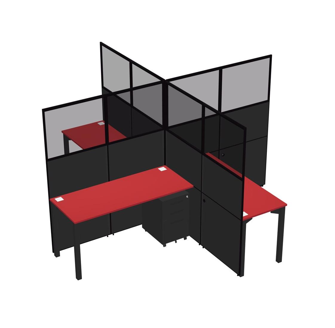 Prism Red Quad Cubicle Workstations For 4 + Black Metal Mobile Drawers