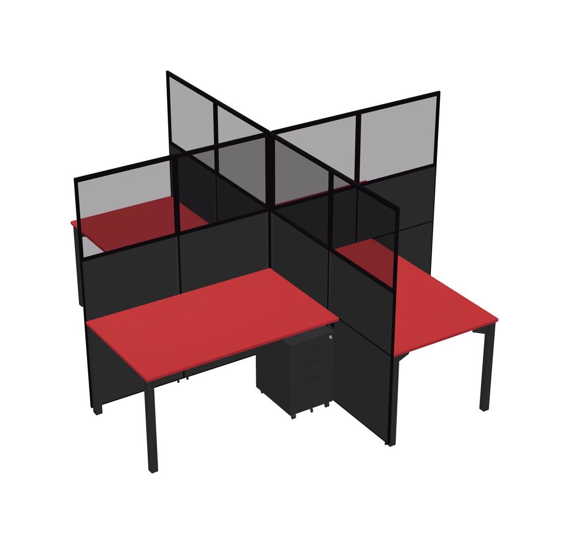 Prism Red Quad Cubicle Workstations For 4 + Black Metal Mobile Drawers