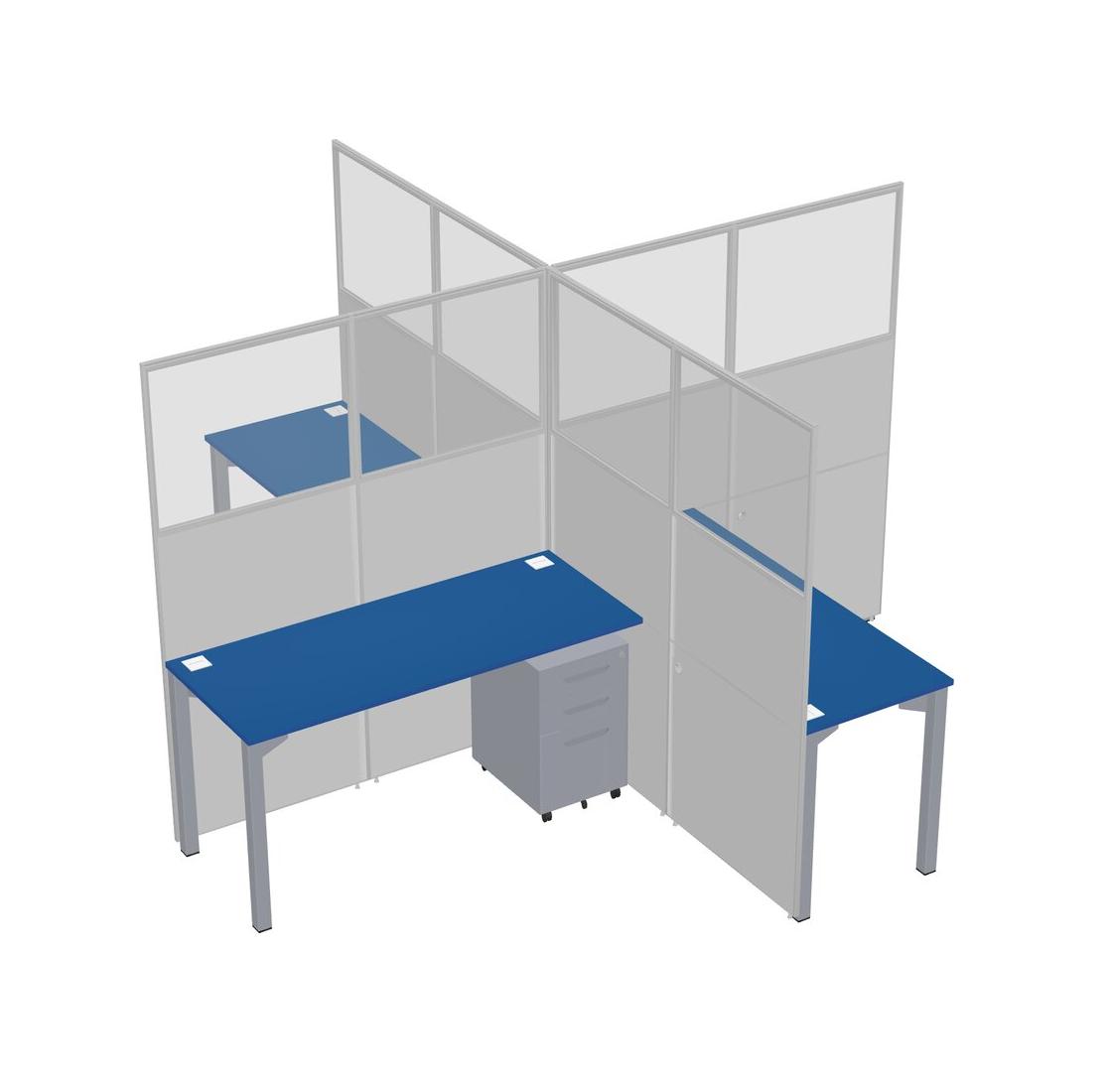 Prism Blue Quad Cubicle Workstations For 4 + Grey Metal Mobile Drawers