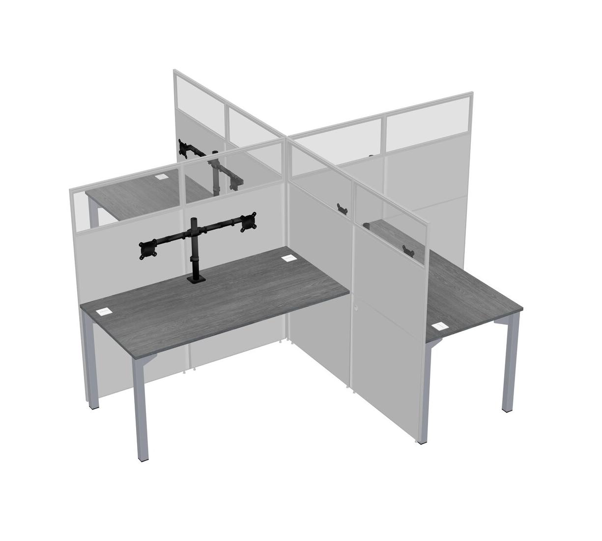 Grey Quad Cubicle Workstations For 4 + Monitor Arm (double Arms)
