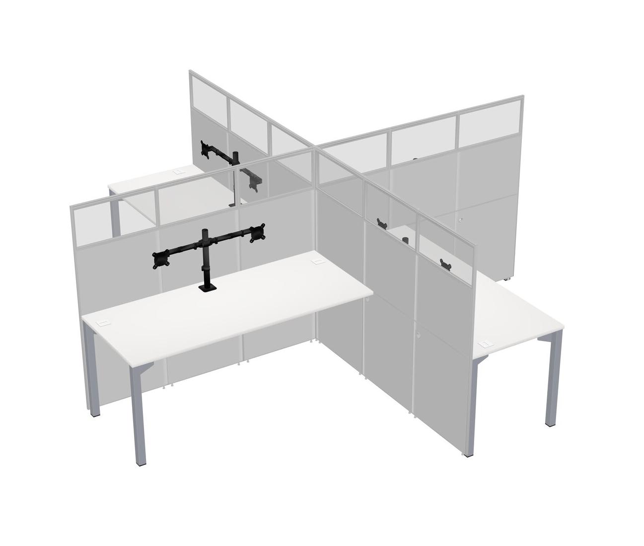 White Quad Cubicle Workstations For 4 + Monitor Arm (double Arms)