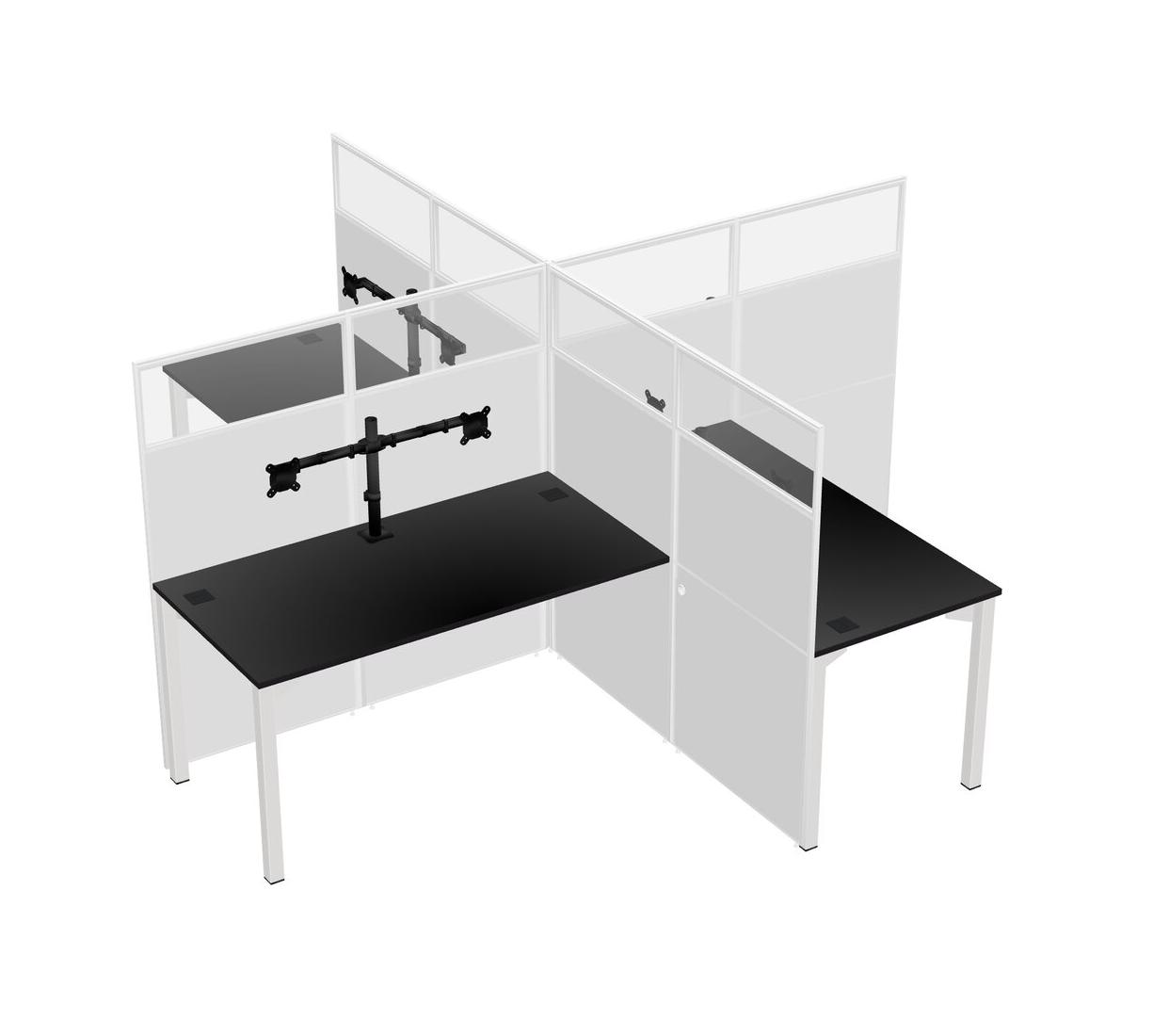 Black Quad Cubicle Workstations For 4 + Monitor Arm (double Arms)