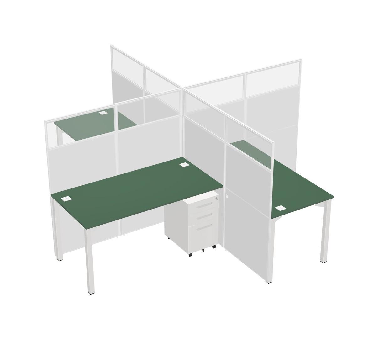 Green Quad Cubicle Workstations For 4 + White Metal Mobile Drawers