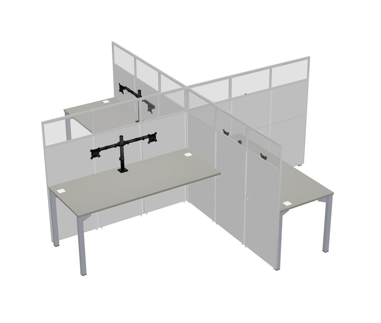 Grey Shadows Quad Cubicle Workstations For 4 + Monitor Arm (double Arms)