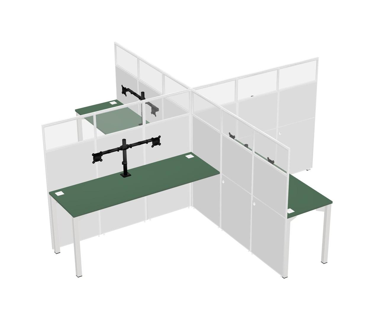 Green Quad Cubicle Workstations For 4 + Monitor Arm (double Arms)