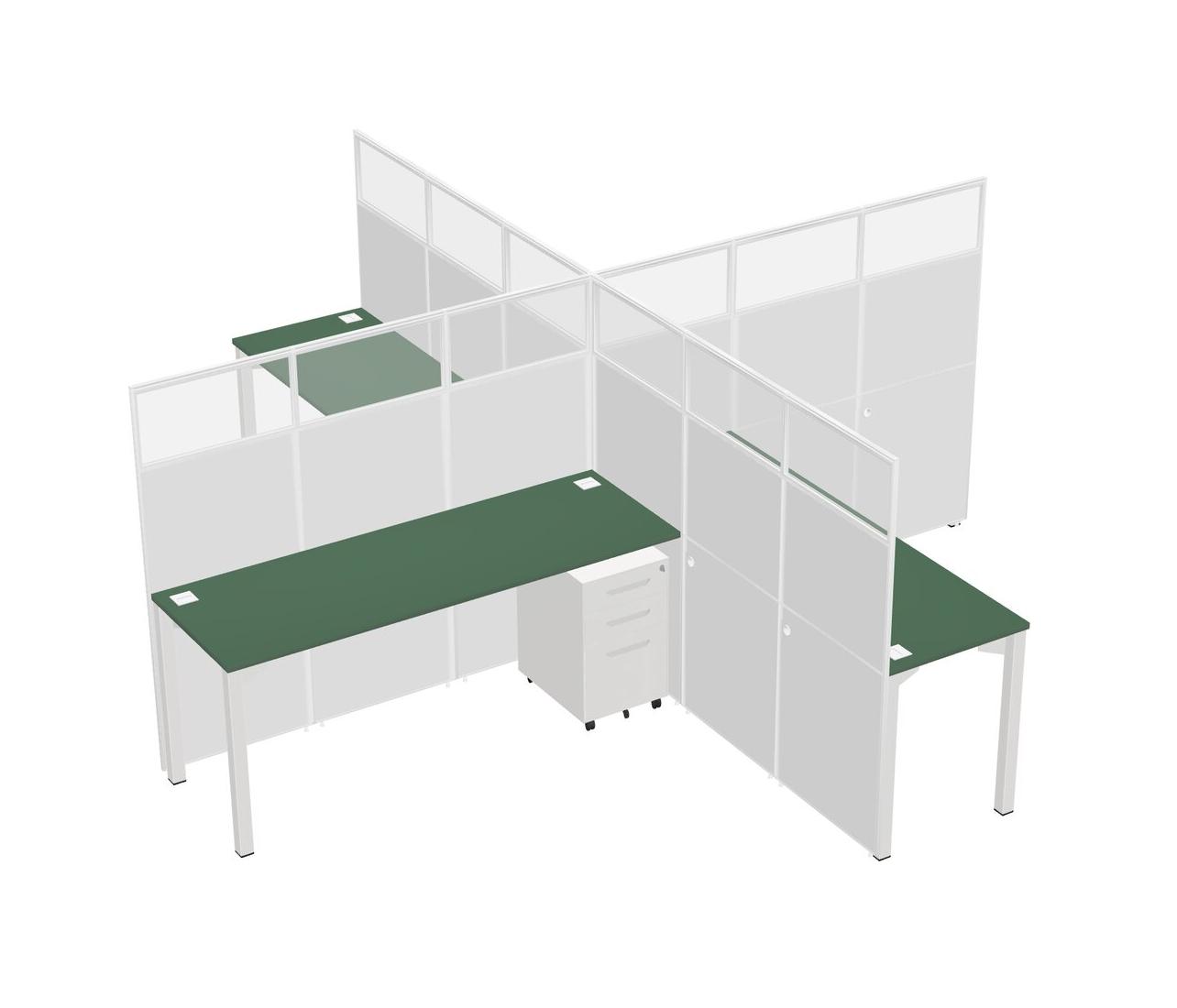 Green Quad Cubicle Workstations For 4 + White Metal Mobile Drawers