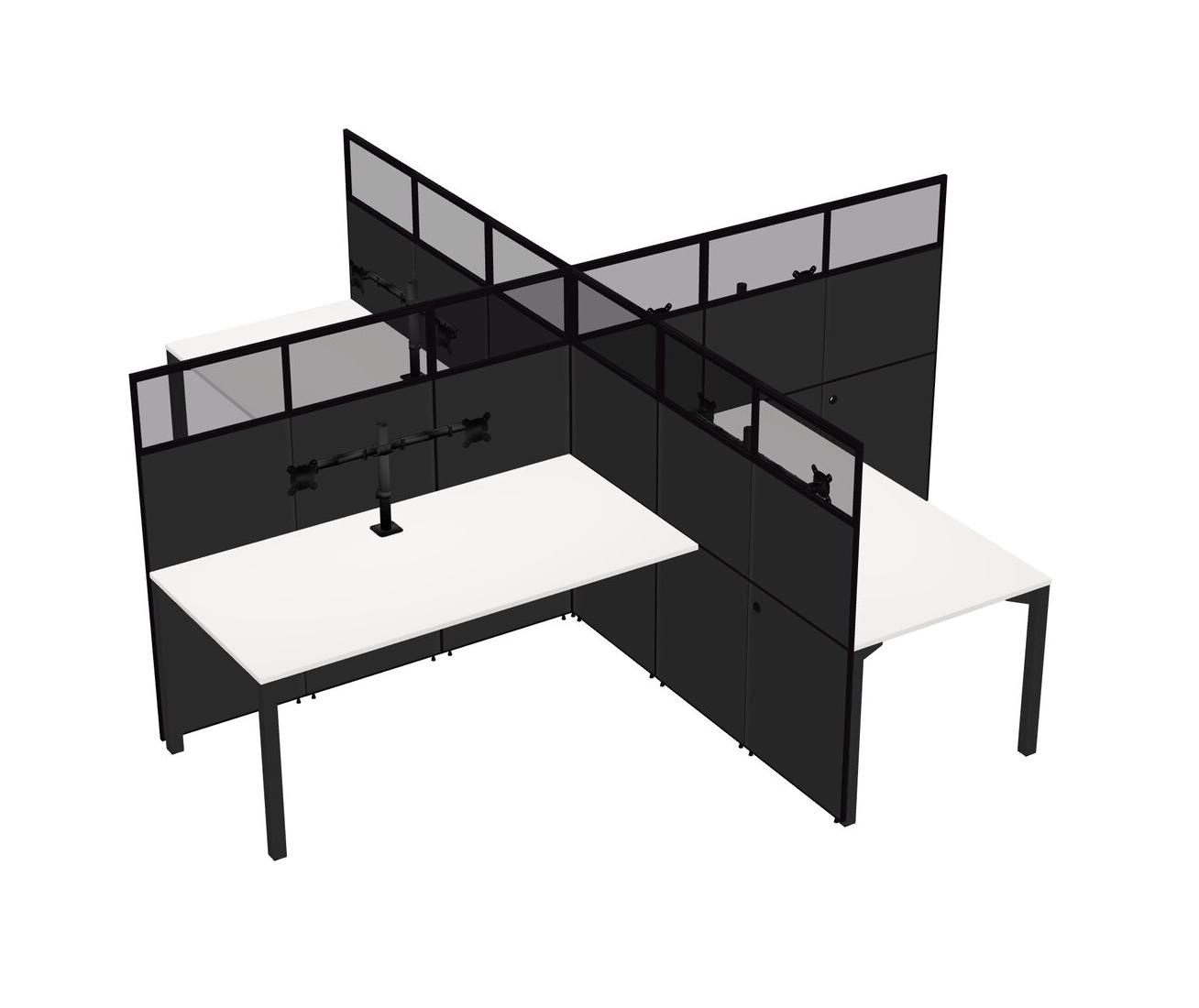 White Quad Cubicle Workstations For 4 + Monitor Arm (double Arms)