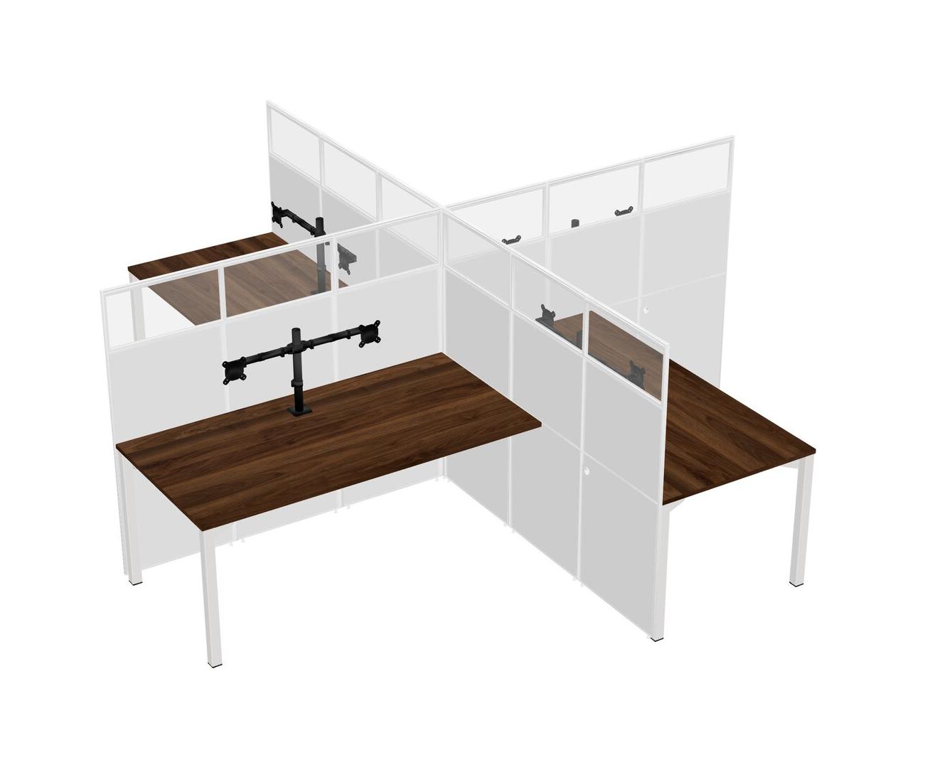 Columbia Walnut Quad Cubicle Workstations For 4 + Monitor Arm (double Arms)