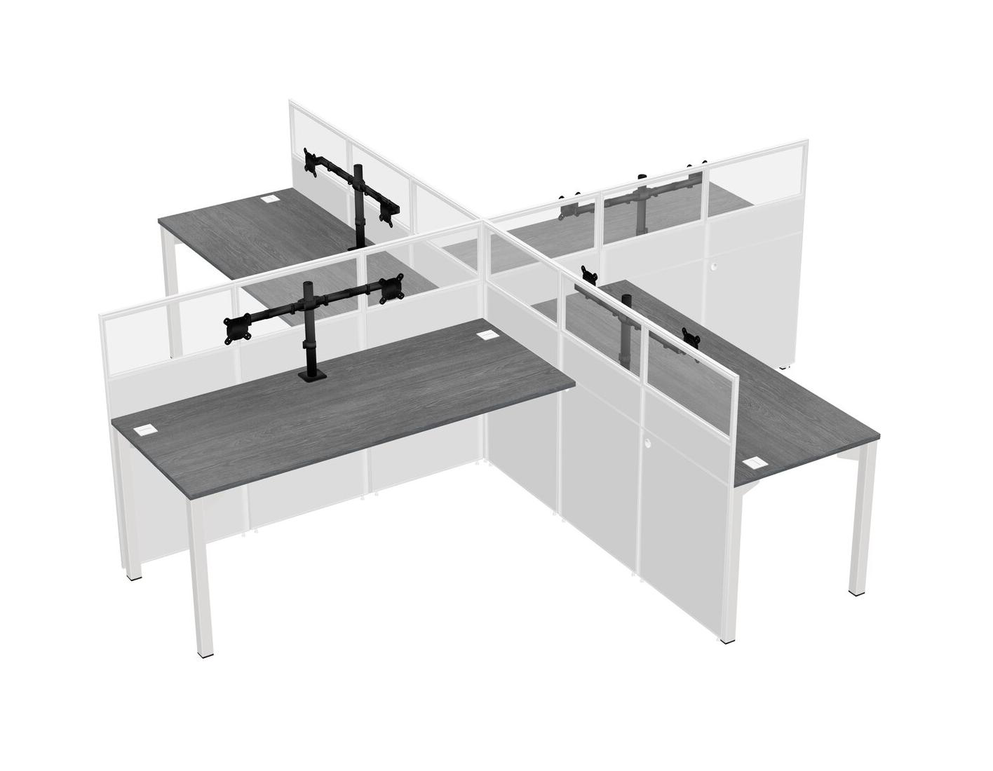Grey Quad Cubicle Workstations For 4 + Monitor Arm (double Arms)
