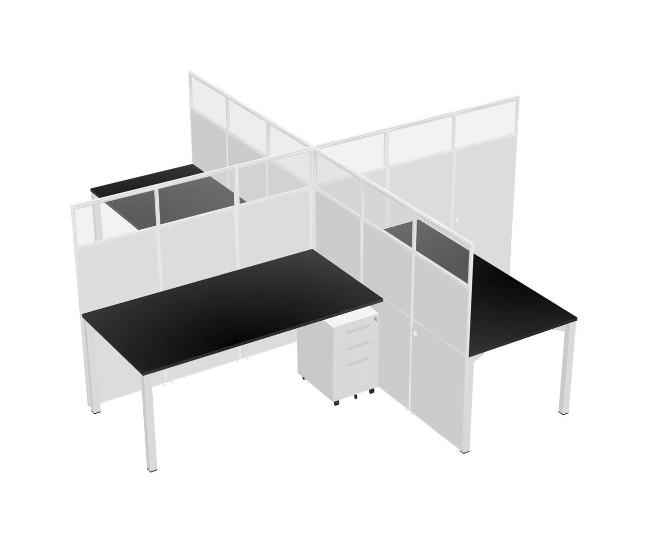 Black Quad Cubicle Workstations For 4 + White Metal Mobile Drawers
