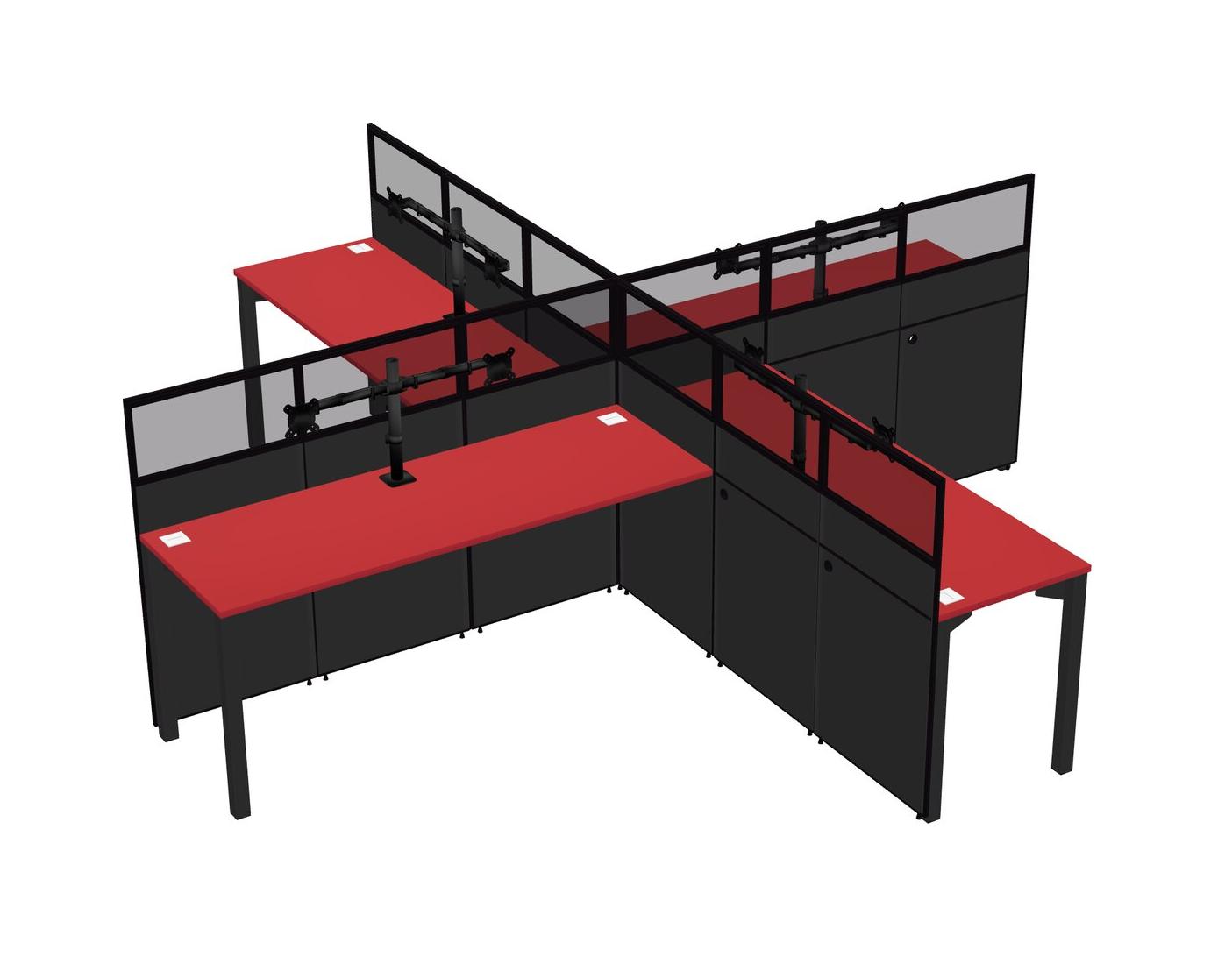 Prism Red Quad Cubicle Workstations For 4 + Monitor Arm (double Arms)