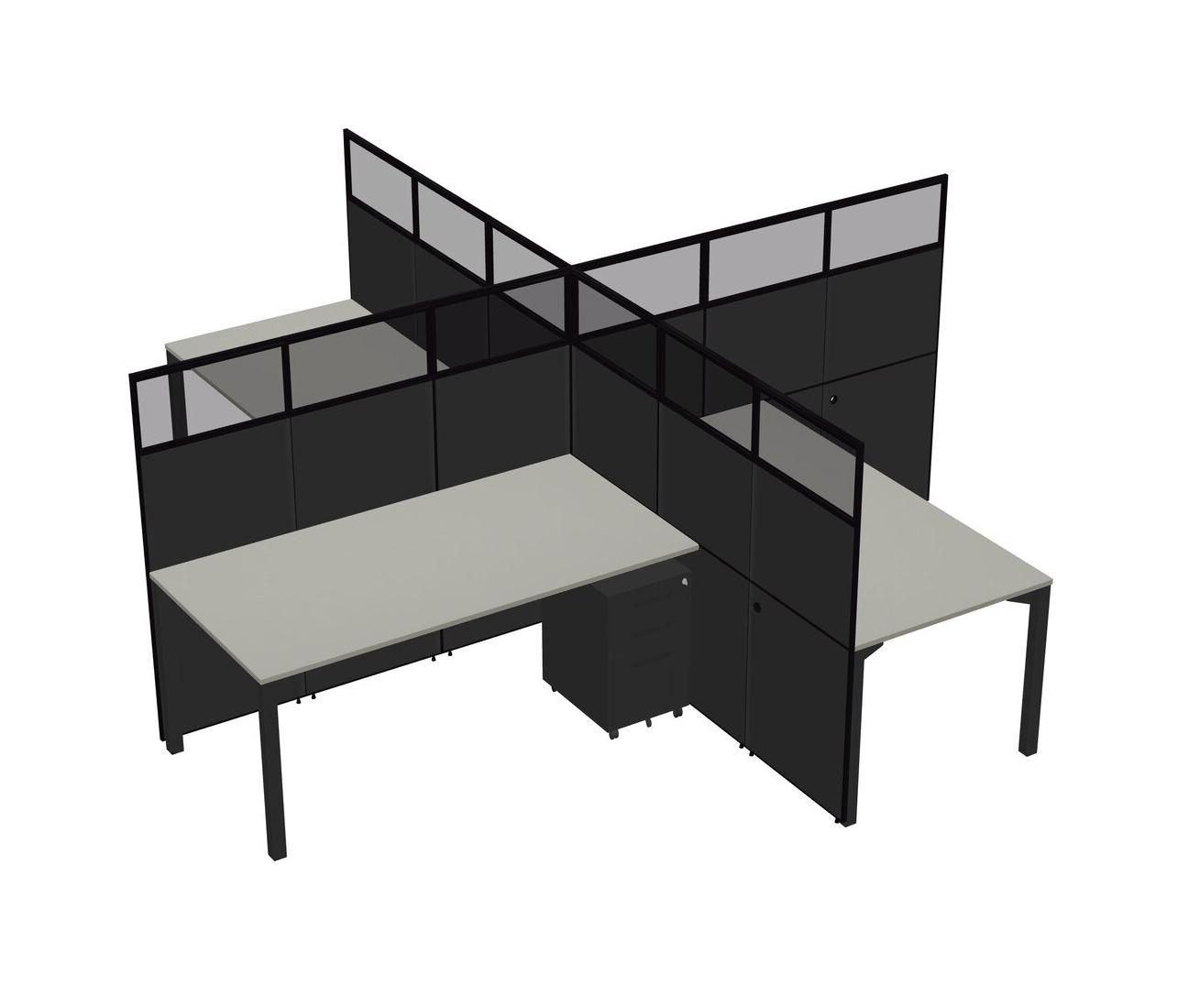 Grey Shadows Quad Cubicle Workstations For 4 + Black Metal Mobile Drawers