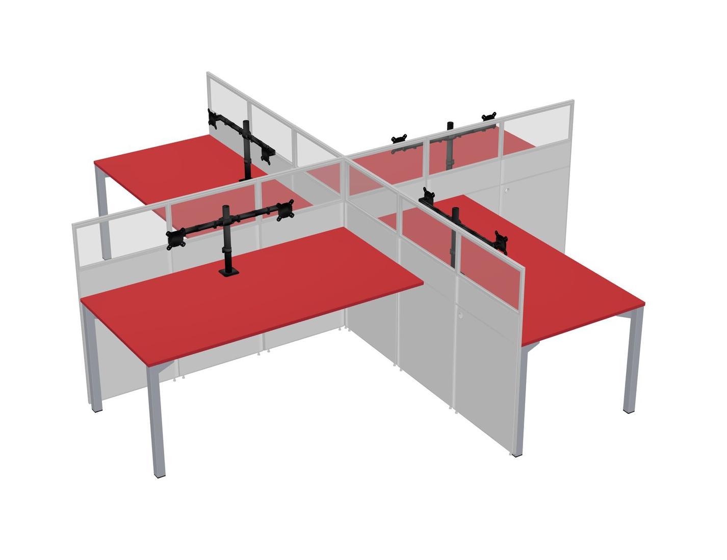 Prism Red Quad Cubicle Workstations For 4 + Monitor Arm (double Arms)