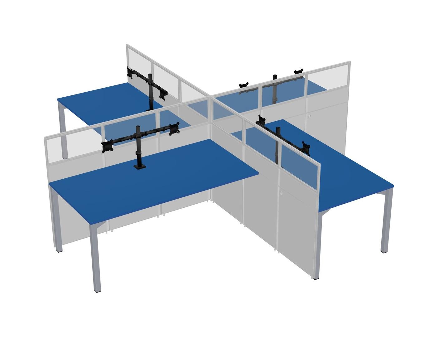 Prism Blue Quad Cubicle Workstations For 4 + Monitor Arm (double Arms)