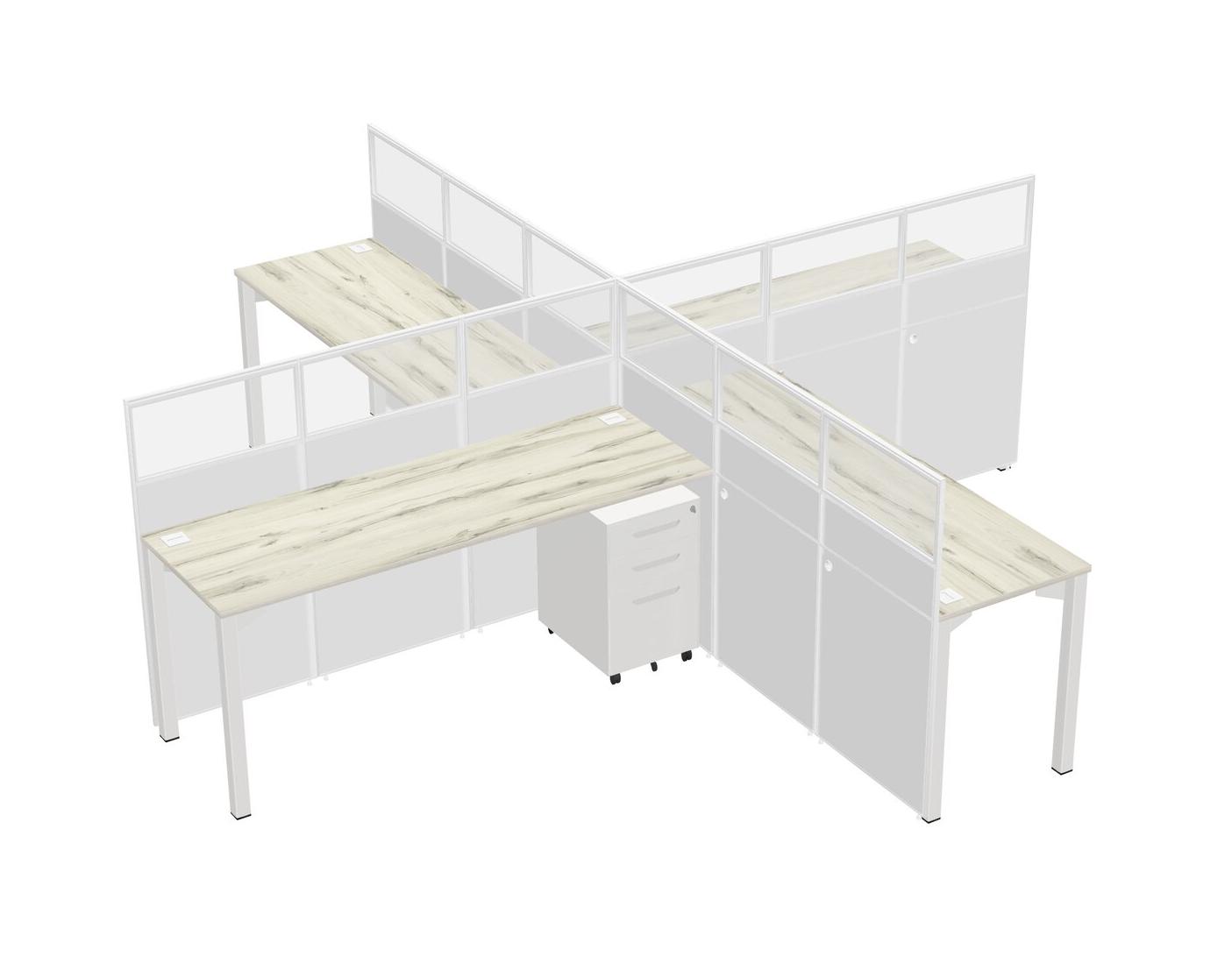 Heinne Holz Quad Cubicle Workstations For 4 + White Metal Mobile Drawers