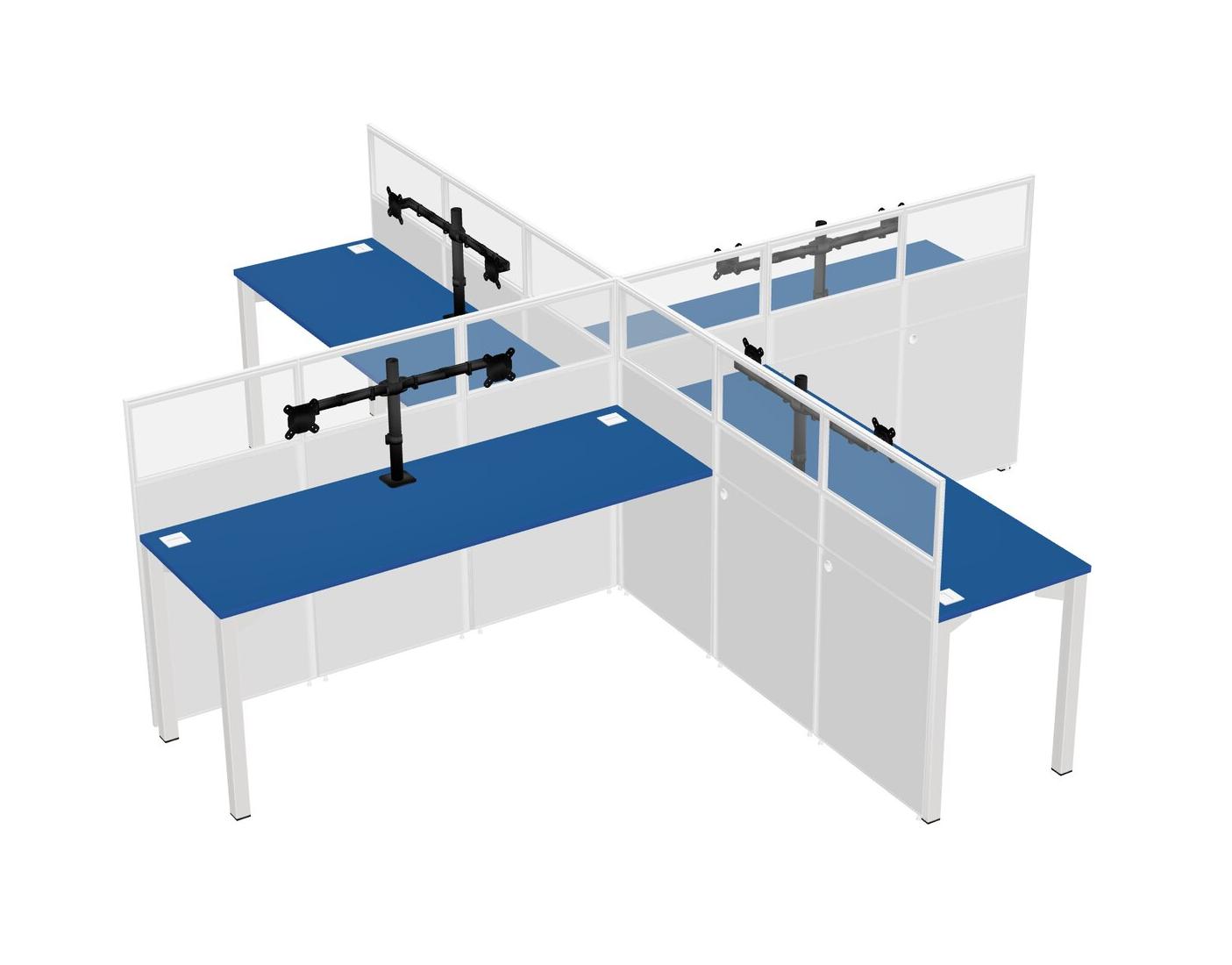 Prism Blue Quad Cubicle Workstations For 4 + Monitor Arm (double Arms)
