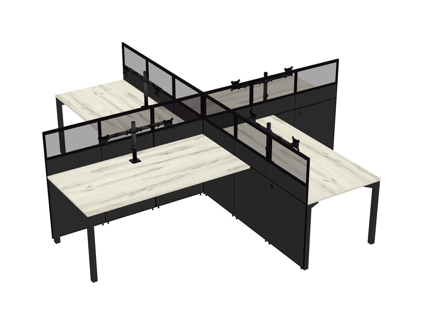 Heinne Holz Quad Cubicle Workstations For 4 + Monitor Arm (double Arms)