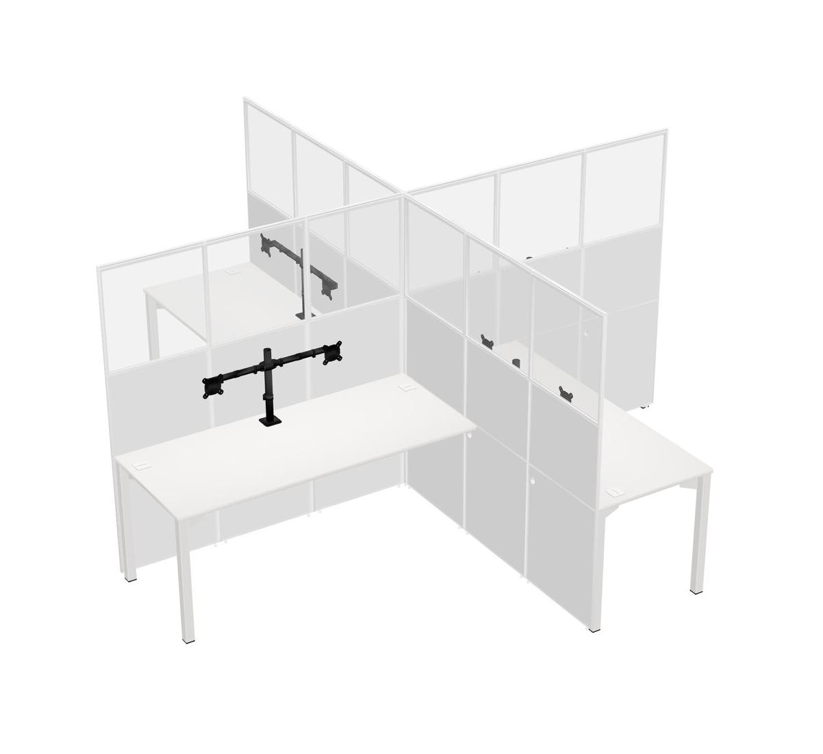 White Quad Cubicle Workstations For 4 + Monitor Arm (double Arms)