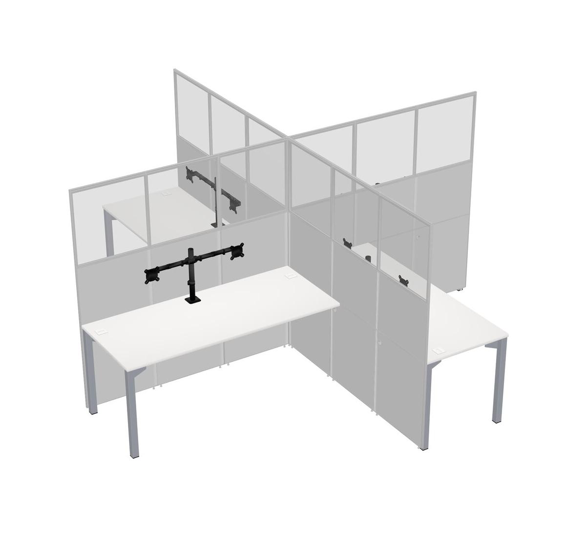 White Quad Cubicle Workstations For 4 + Monitor Arm (double Arms)