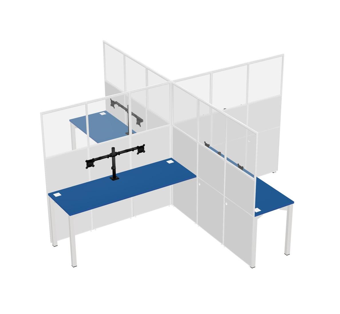 Prism Blue Quad Cubicle Workstations For 4 + Monitor Arm (double Arms)