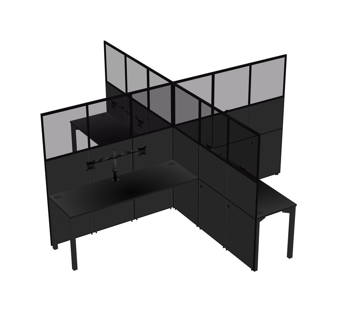 Black Quad Cubicle Workstations For 4 + Monitor Arm (double Arms)
